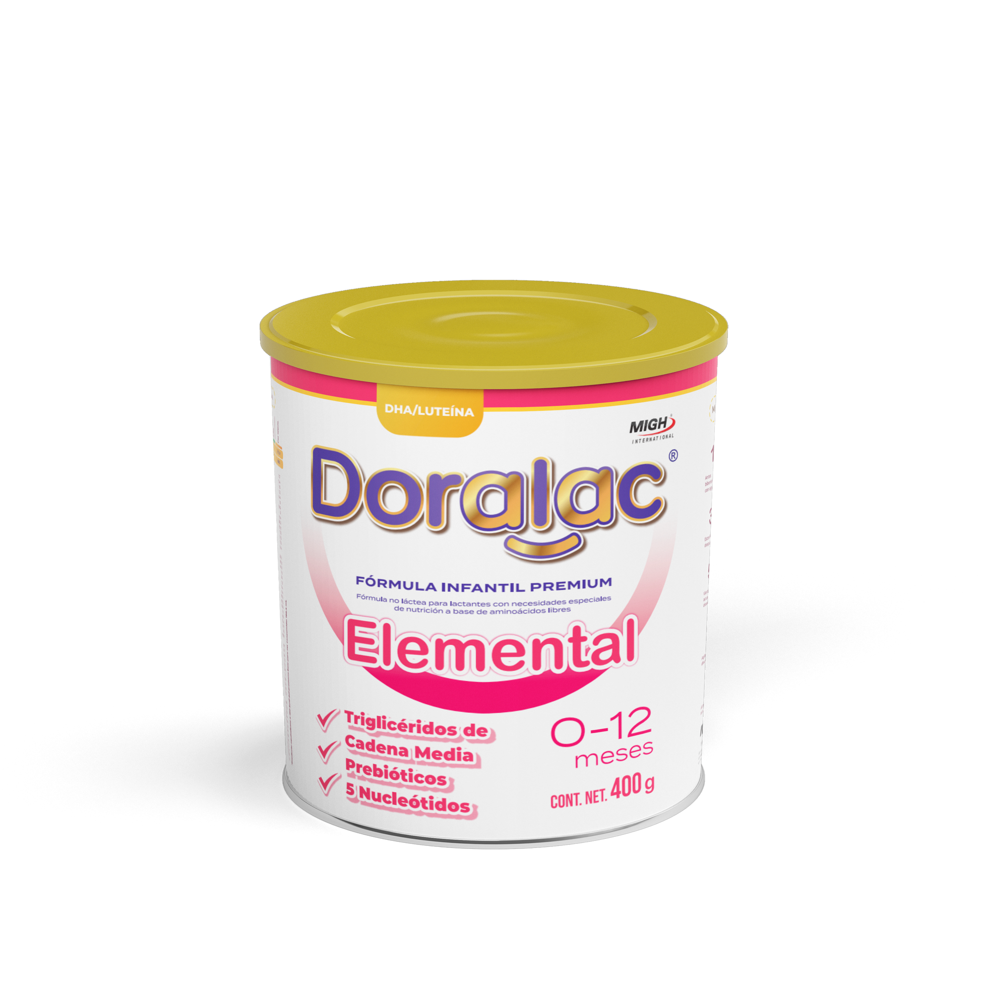 Cuando un bebé presenta alergias alimentarias múltiples, síndromes de malabsorción severa o fallas intestinales, su sistema digestivo requiere la nutrición más elemental y fácil de asimilar. DORALAC® ELEMENTAL es una fórmula no láctea a base de aminoácidos libres, diseñada como una alternativa segura a la leche materna para lactantes con las condiciones digestivas más desafiantes.