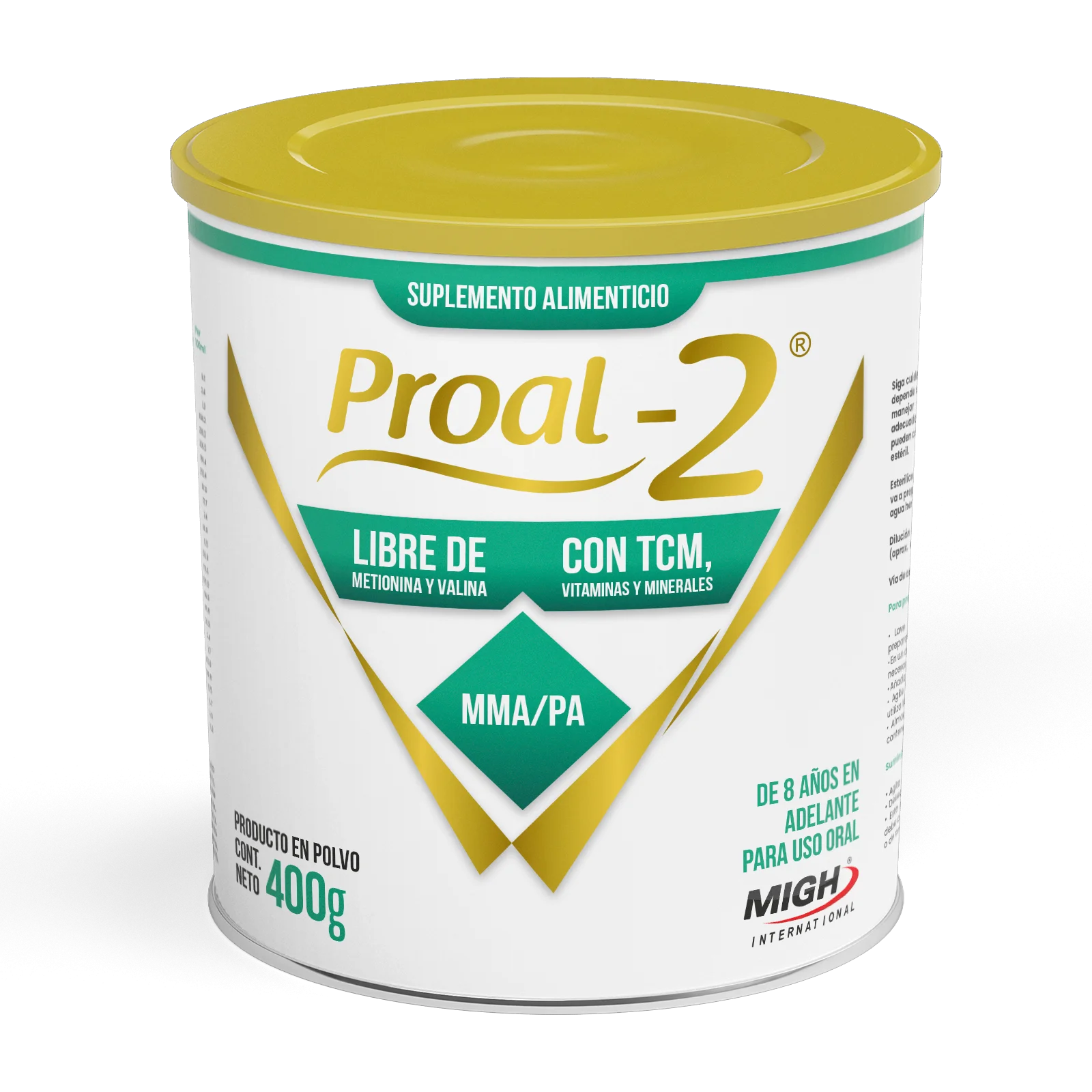 Proal-2® es un suplemento alimenticio en polvo libre de metionina y valina, formulado para adolescentes desde los 8 años y adultos con acidemia metilmalónica (MMA) y acidemia propiónica (PA). Estas condiciones genéticas requieren una dieta estricta baja en proteínas específicas, y Proal-2® ofrece una solución nutricional segura y especializada. Su fórmula contiene una mezcla de aminoácidos esenciales, hidratos de carbono, lípidos, vitaminas y minerales, en proporciones acordes con las recomendaciones internacionales. Está enriquecido con ácidos grasos poliinsaturados de cadena larga (LCP), fundamentales para el desarrollo cognitivo y visual, y su perfil energético equilibrado evita que las proteínas sean utilizadas como fuente de energía.